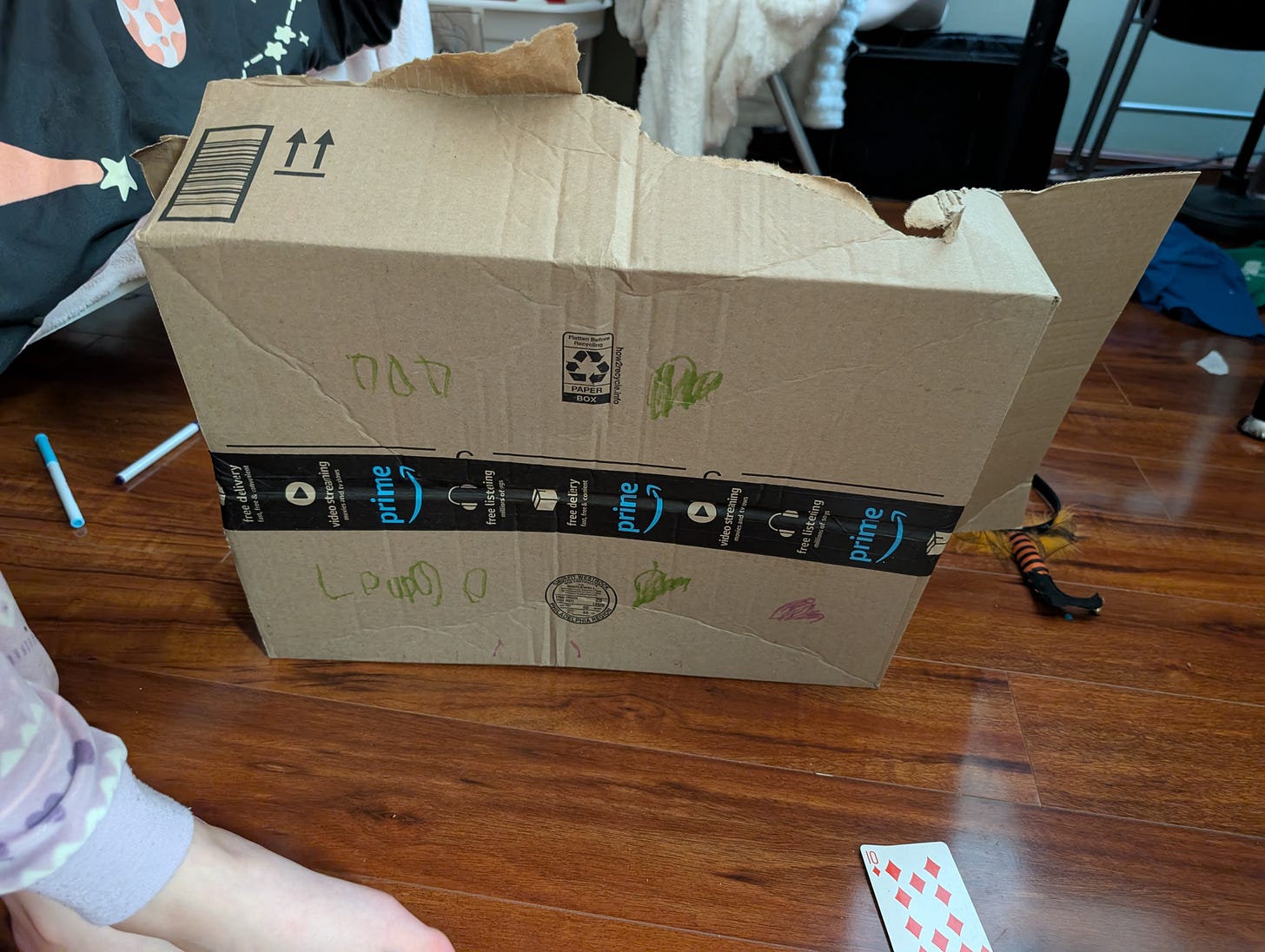 It’s a scratch and dent model too but we don’t care as the screen seems to be in pretty good shape except for the creases and marker marks. It comes with 2 channels: One called “DAD”. and one that is undecipherable so I’m not sure about both channels.