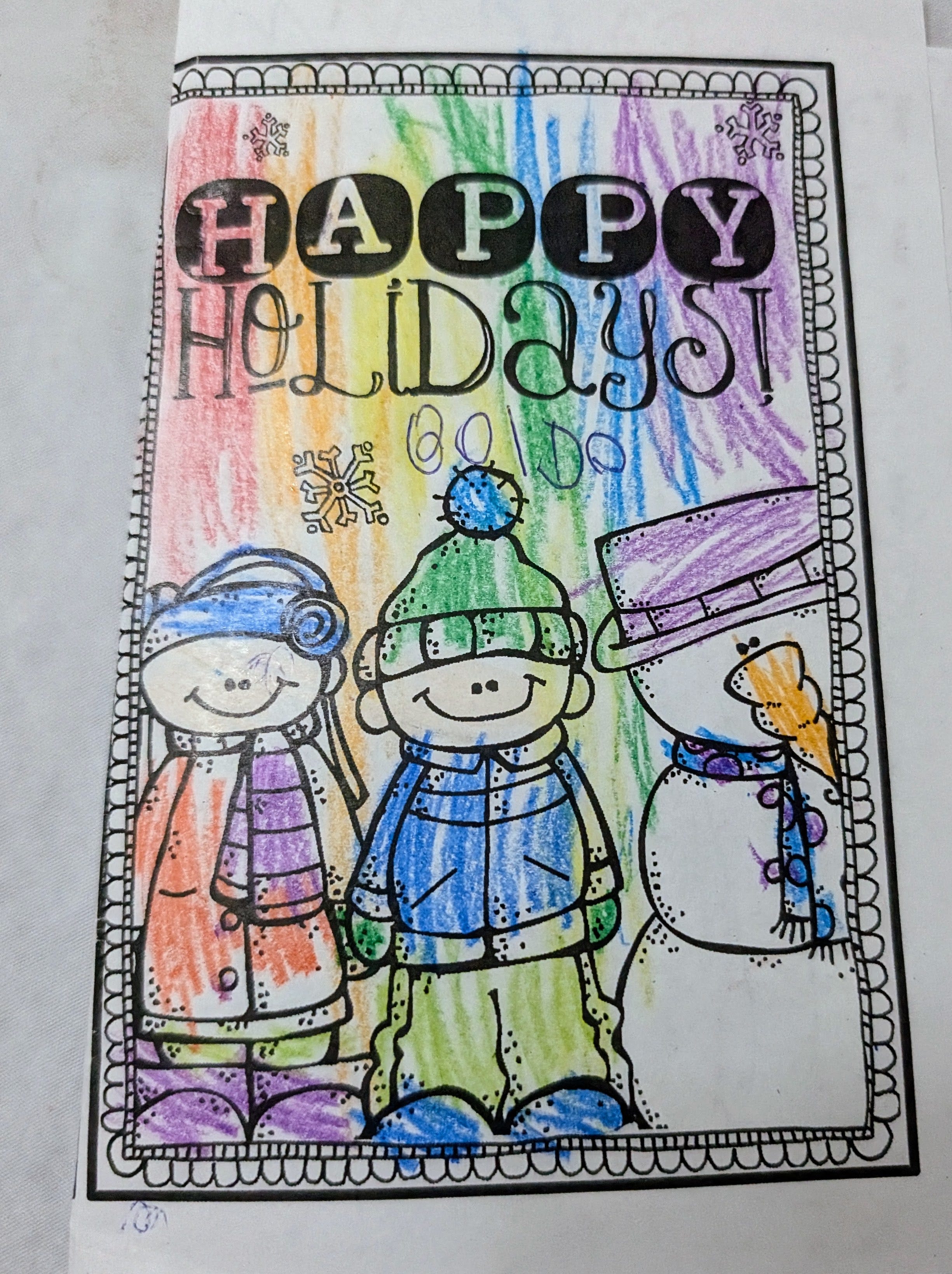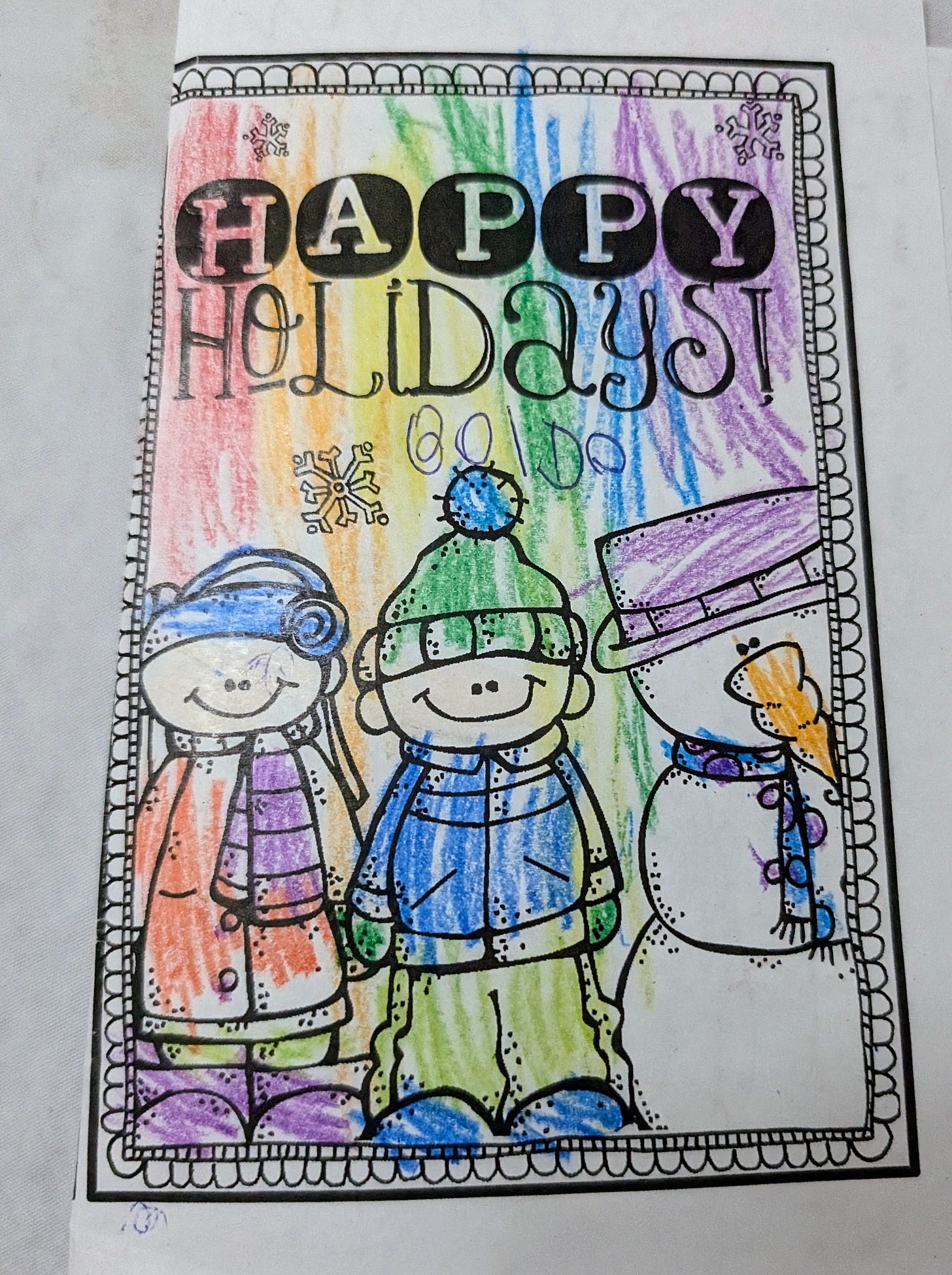 At first glance, it looks like just some school coloring and I was ready to toss it because even though I keep a lot of the artwork - we can’t keep it all. But BW pointed out that it was not just some coloring schoolwork but it was a Christmas card for the Dog