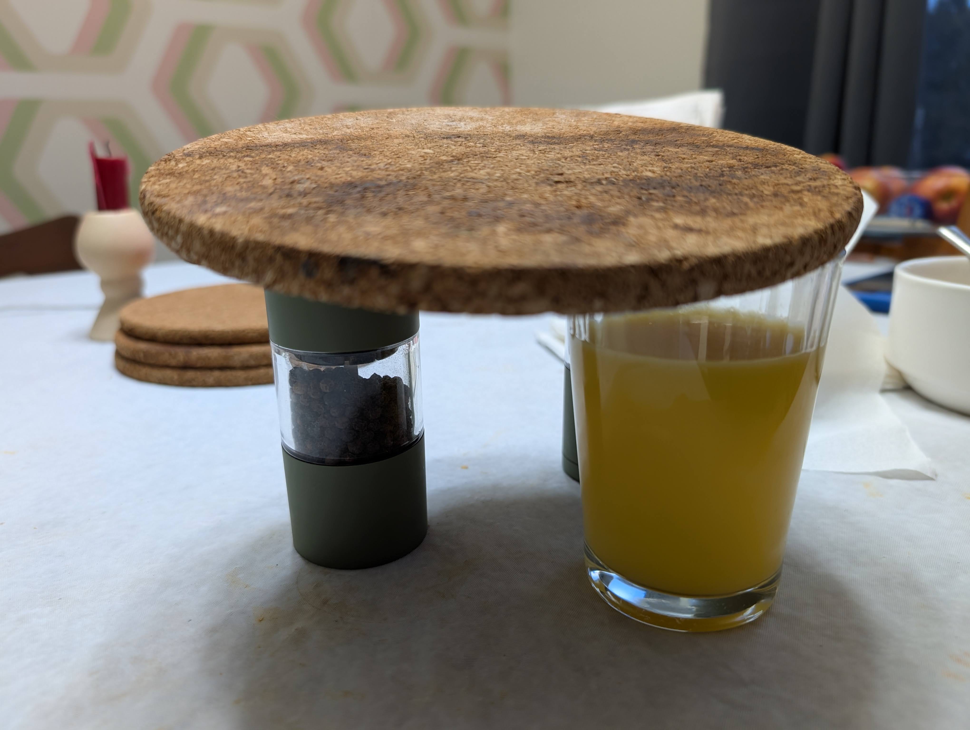Excuse the rough draft as we had 8 minutes to catch the school bus so there wasn’t a whole lot of time to get the measurements right and we just went with the tools that we had at hand and that included her glass of OJ and trivet