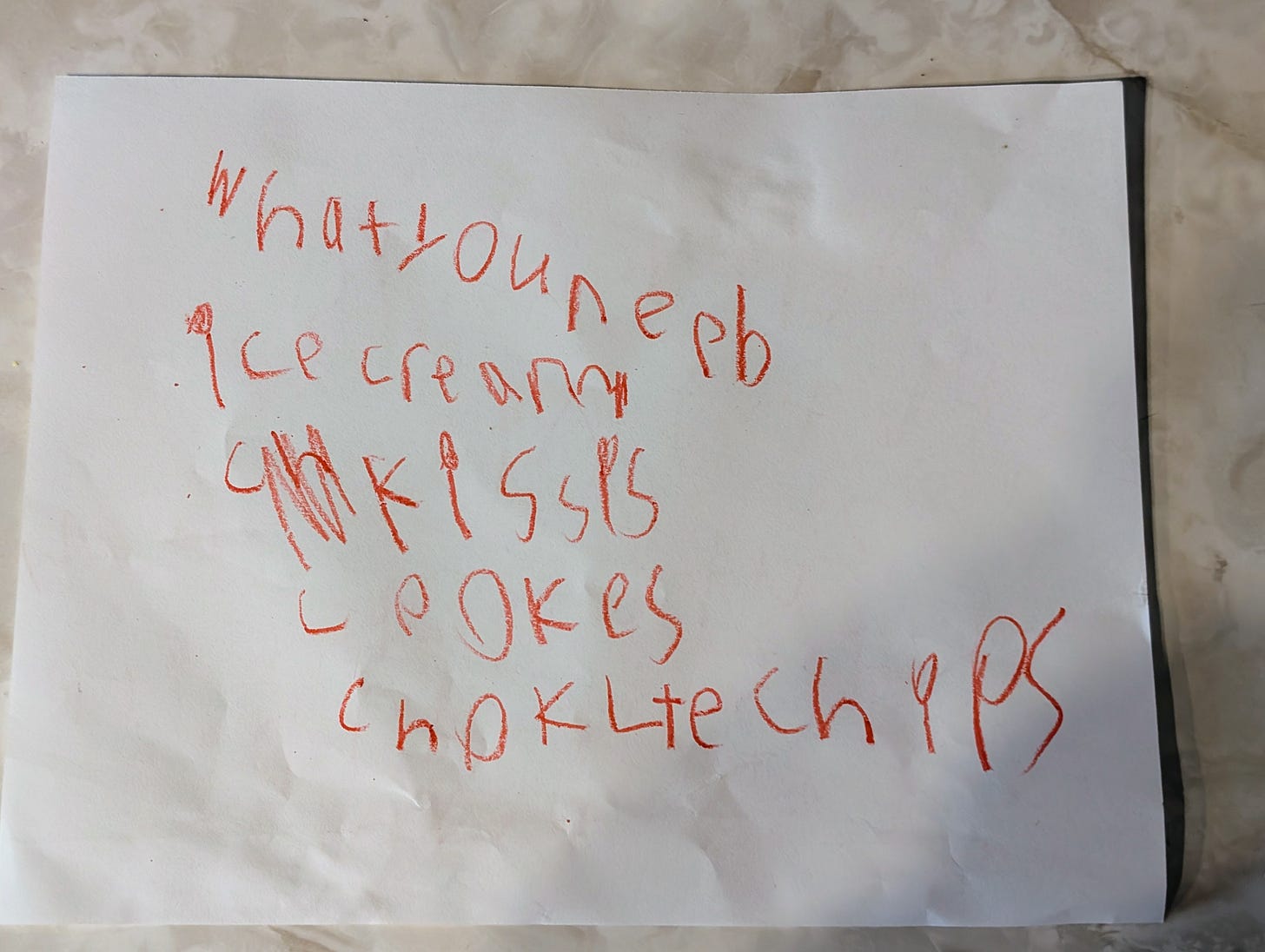 We have lots of lists and little bits of paper that just randomly show up on the kitchen counter, or table. I found one earlier today that read: I LOVE YOU MOM. No rhyme or reason but just an urge to write I guess.
