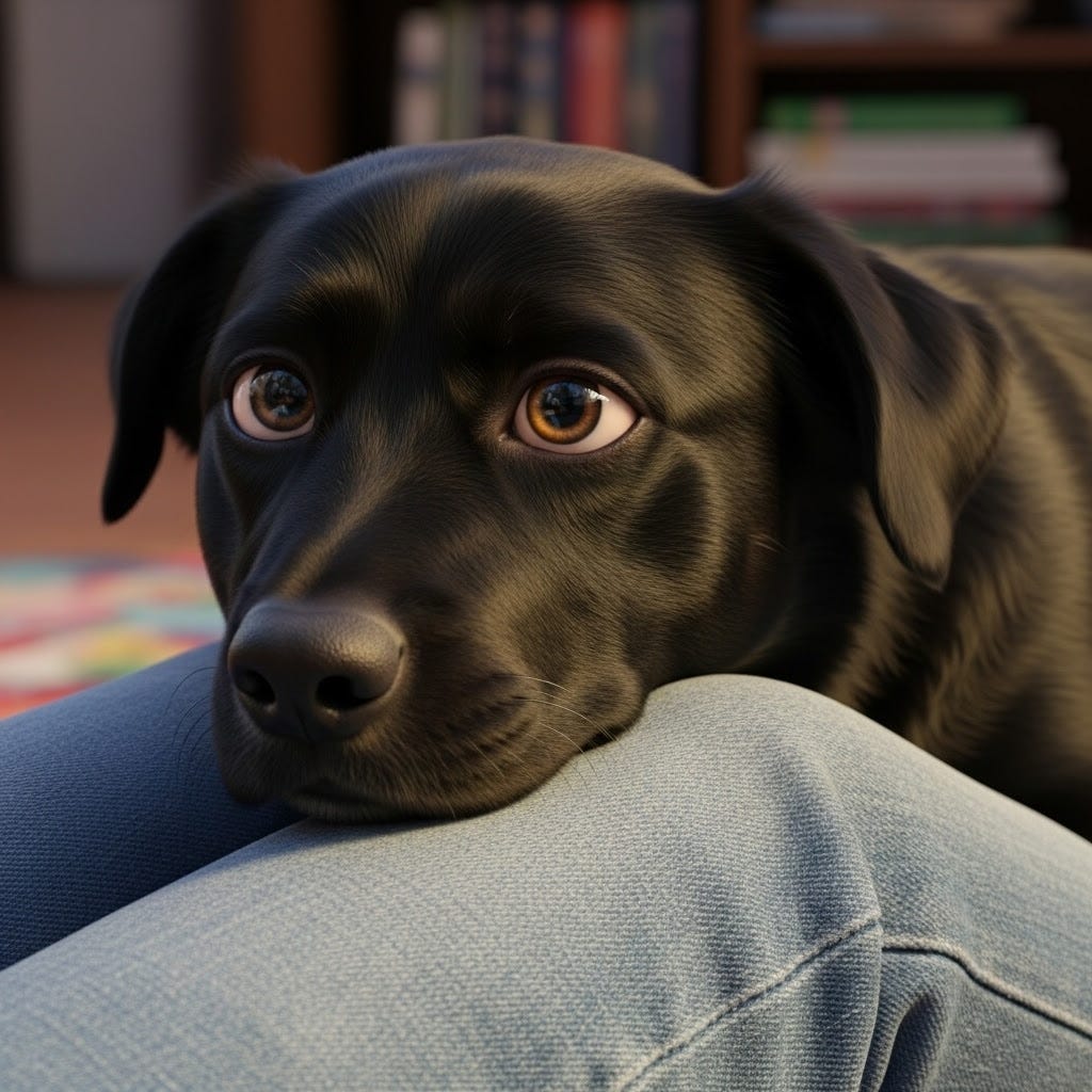 So.If you like dogs and especially like not-so-smart dogs that have attention issues and want to just be in your lap all the time, then come over and visit. She will love you.