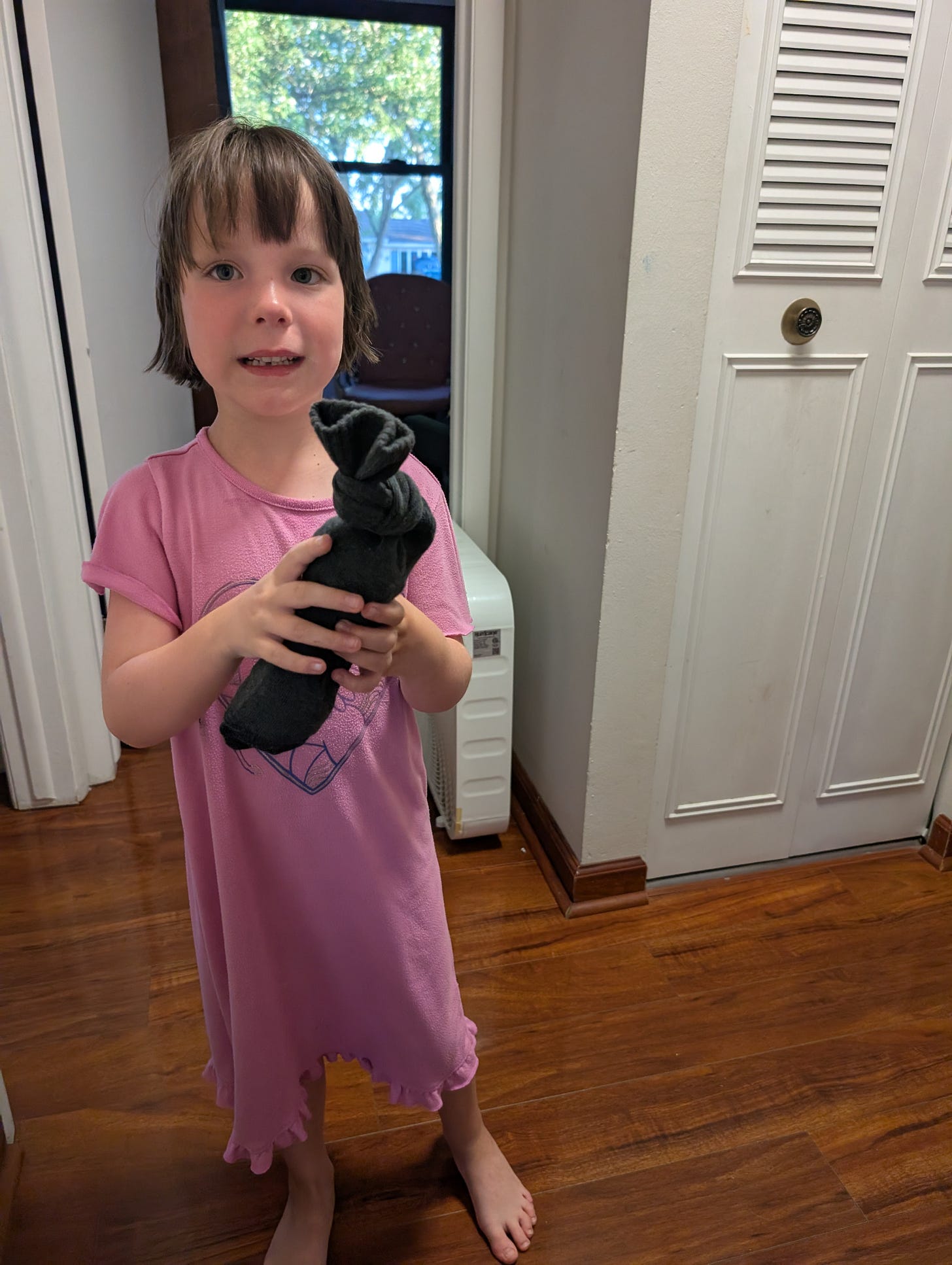 So ya. She went to bed with one of my socks stuffed with her underpants and she couldn’t be happier for the rest of the night.