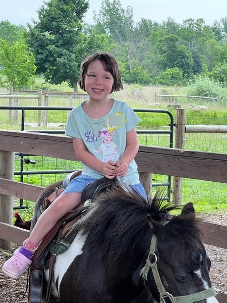 It never dawned on me that they would have a pony that she could ride. It’s been some time since I was on a school trip to a farm so I thought it would be a simple affair: see some chickens and cows and eat a box lunch and that would be it.