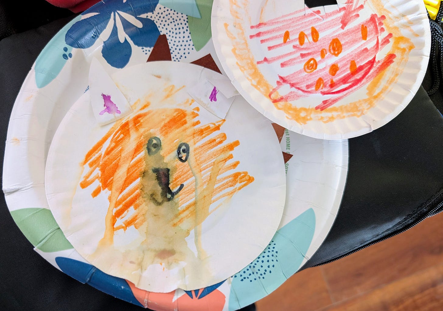 She came home with stories about how her bread was soggy on her sandwich BW made her and it was “disgusting” and also a leaky water bottle and wet pants and wet artwork as you can see above.