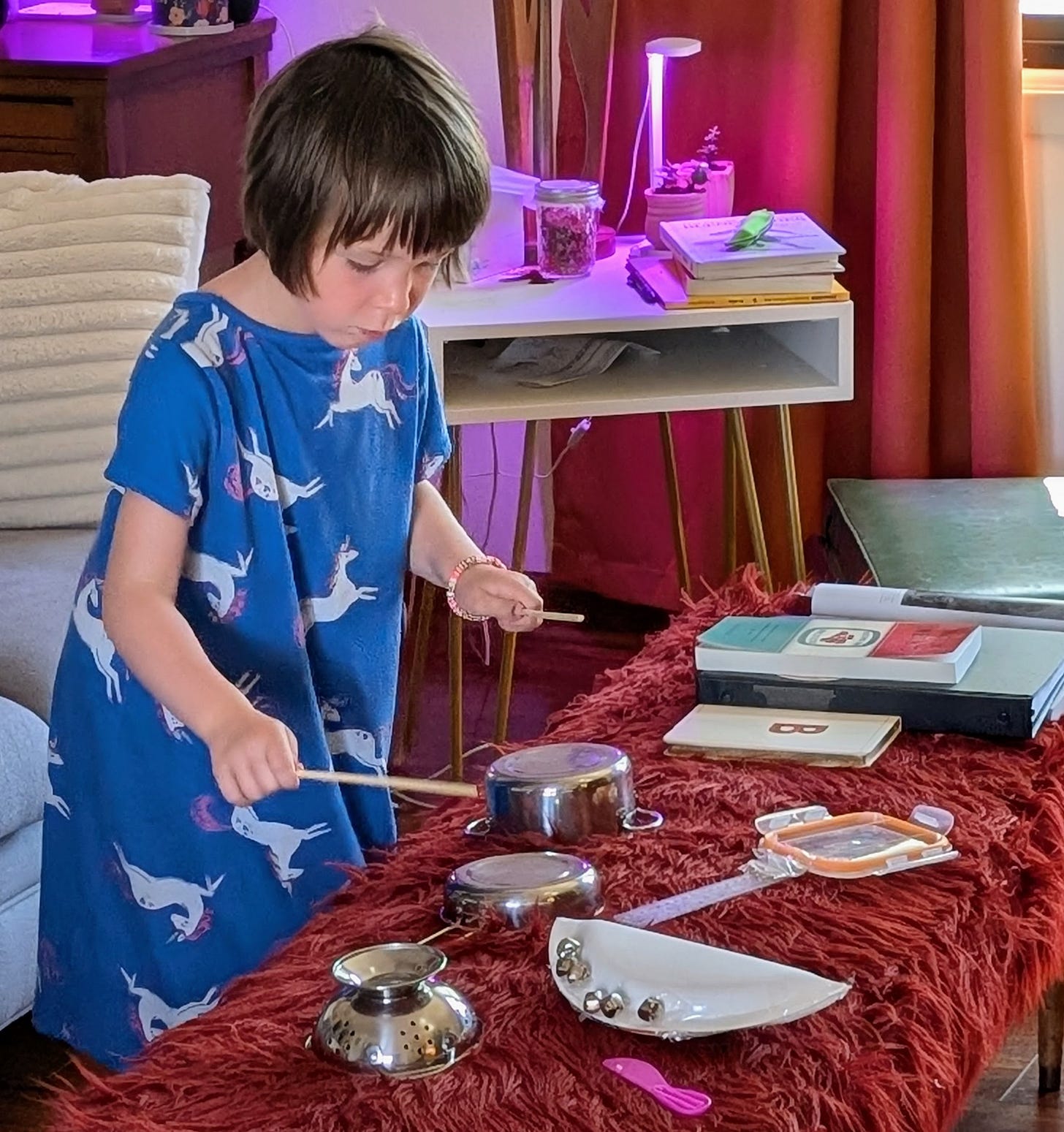 The drum set of course consisted of pots and pans with chopsticks for drumsticks.