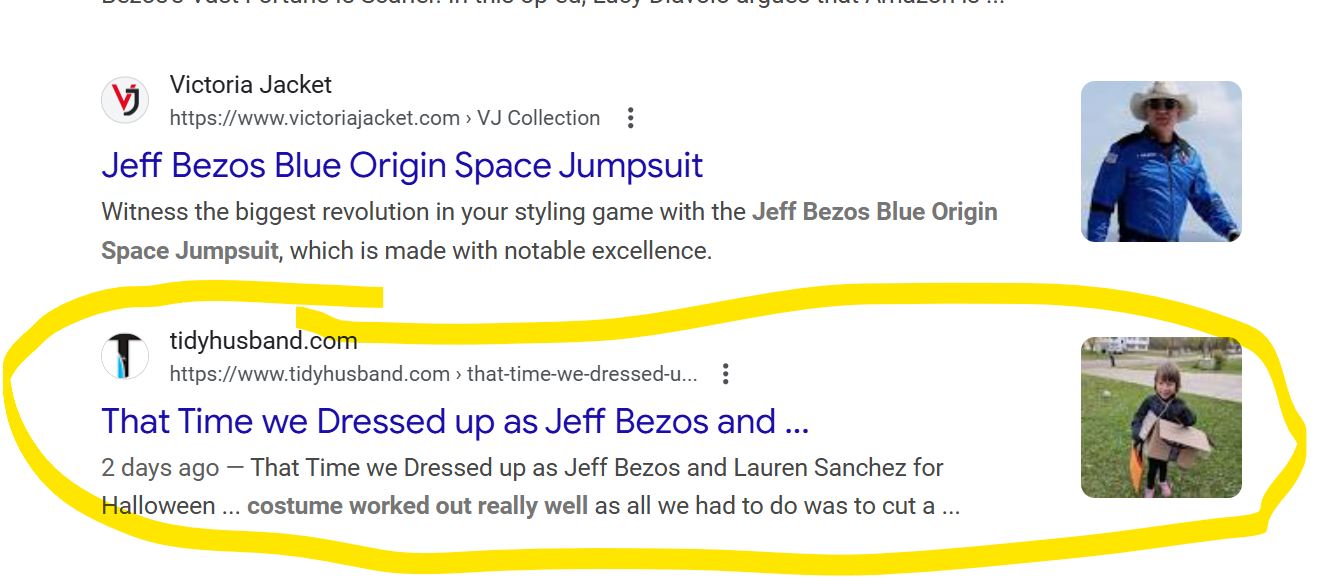 This fame went straight to my head and this got me thinking - what would happen if I searched Google for Jeff Bezos Halloween Costume