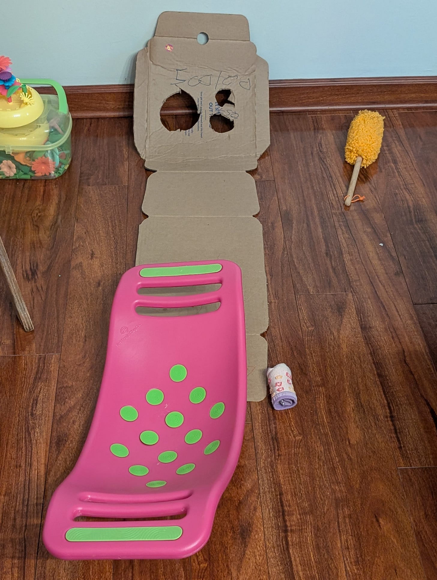 Up next, skee-ball. Or, at least there was a ball. The dog ate the ball and to quote the child “It was a Minnie Mouse ball we bought at the dollar store, but that’s okay”. We’ve been using rolled up socks and they work too. 1