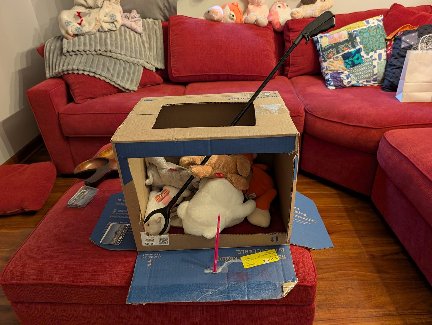 This started out as a Blue Apron box, but when you’re six you can do so much more with it.