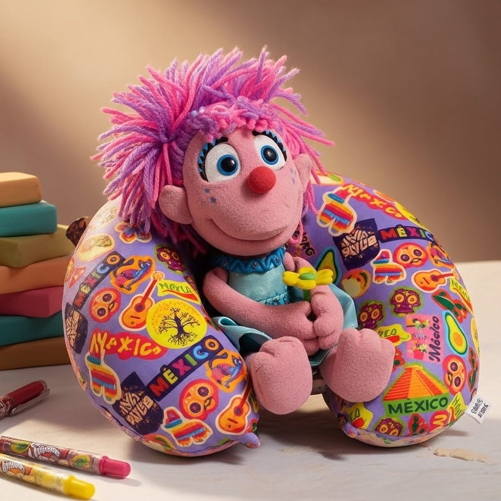 The other fact is that the thing the doll is sitting on - in the photo above - is a travel pillow. To the child it’s one of those chairs for toddlers to sit in, so she has commandeered it and made it for the doll - but to you and I it’s an air travel pillow from Mexico that we may never see again now that it’s claimed for it’s new use.