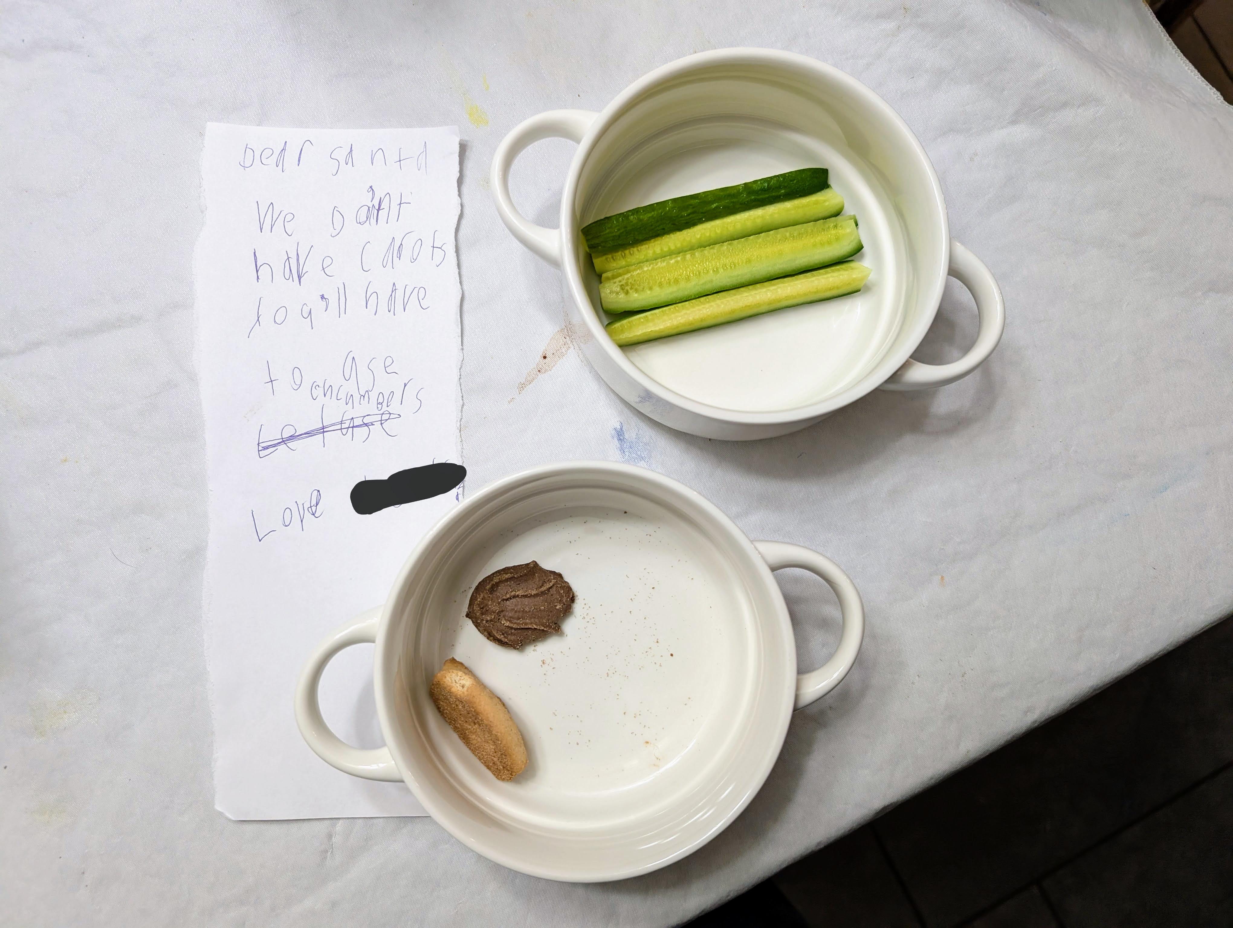 We decided on cucumbers. With a note to explain the situation: