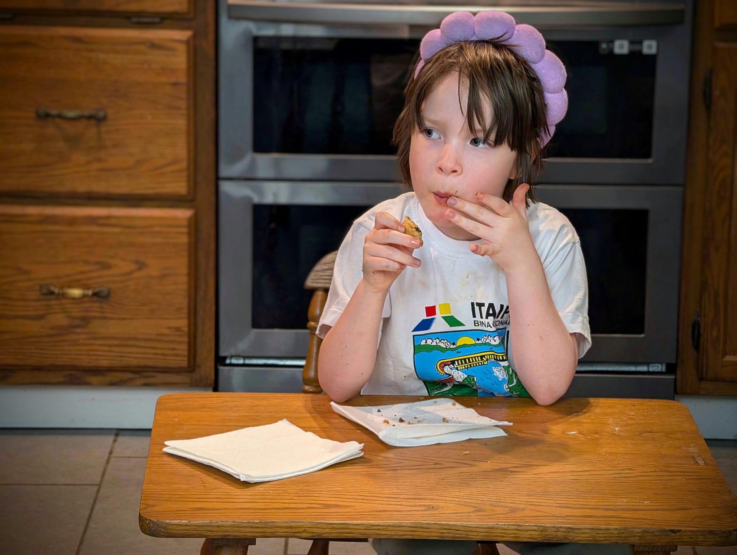 She had me pull up her little table and chair and she setup a little cookie shop where we all had to lineup and get our one cookie doled out to us on a napkin. After we ate our cookie, the adults starting talking and it wasn’t until about 10 minutes or so later I realized the cookie store looked like it was still open after hours and the counter girl was stuffing her face with cookie number three because they are chocolate cookies and the opportunity was there.