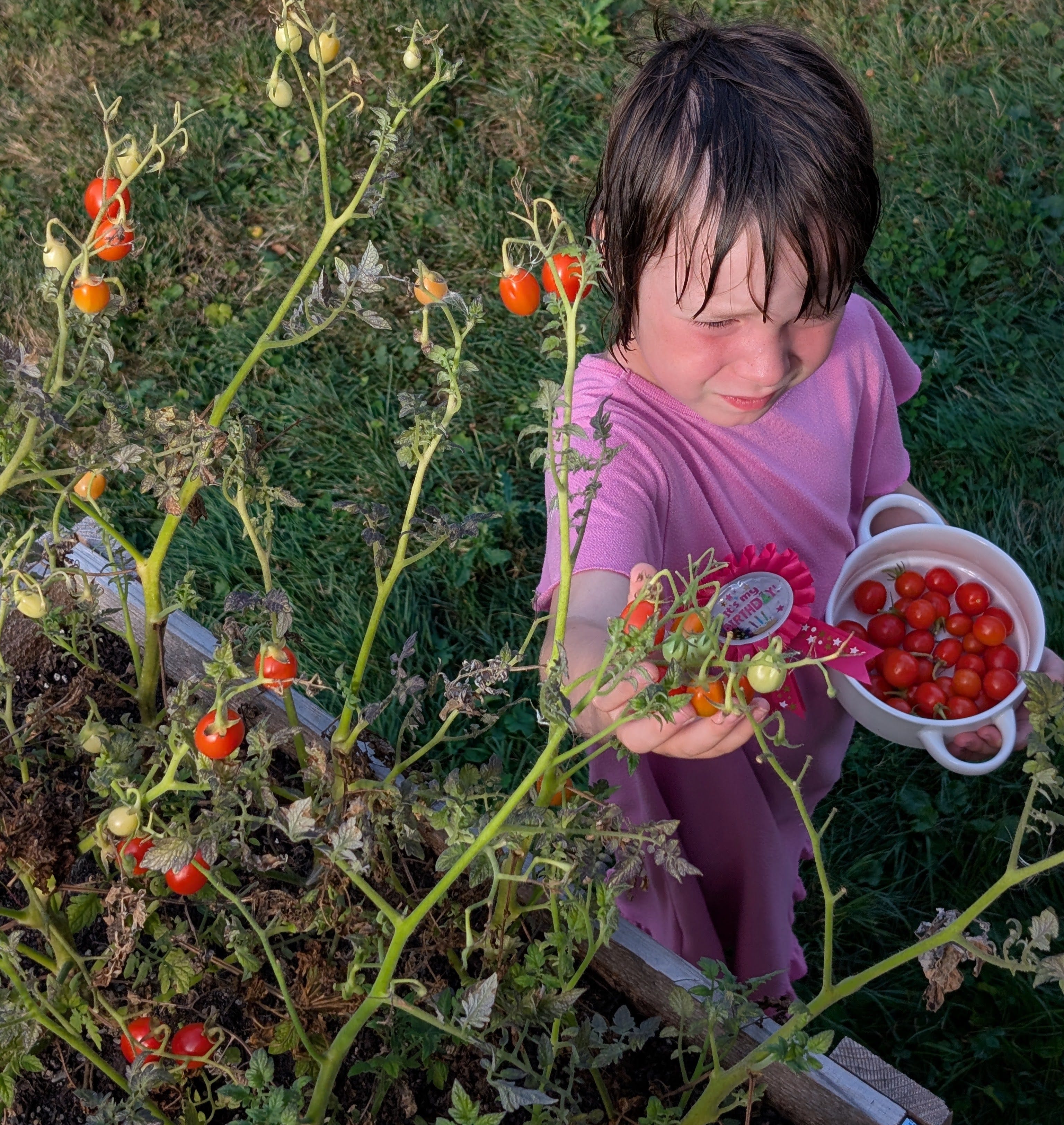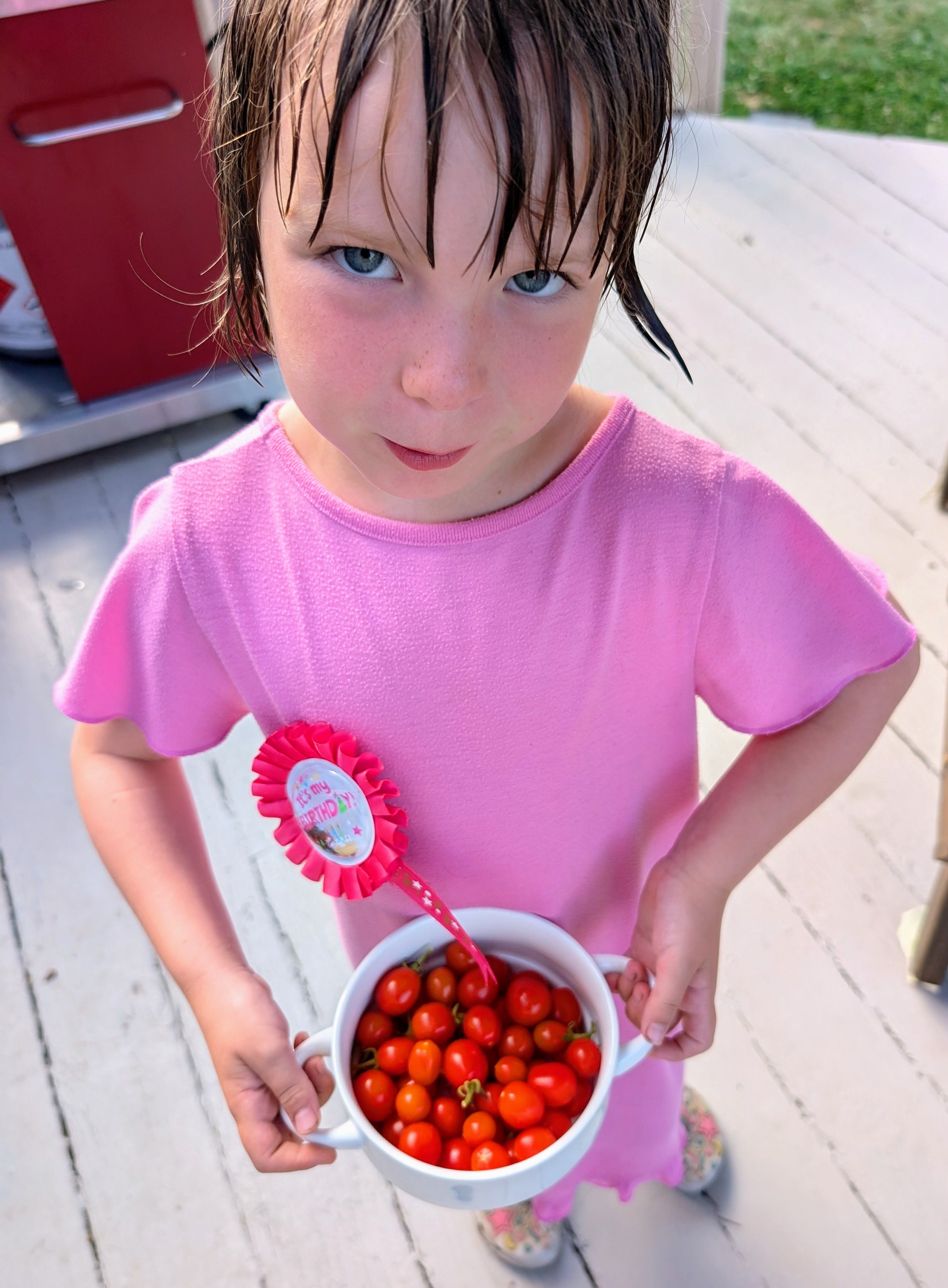 Also if you look closely she has a pin that reads “it’s my birthday”. It’s not her birthday but we bought it for her birthday and she found it again today so what’s old is new again and she pinned it on her pink little nightie.
