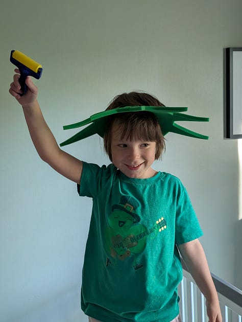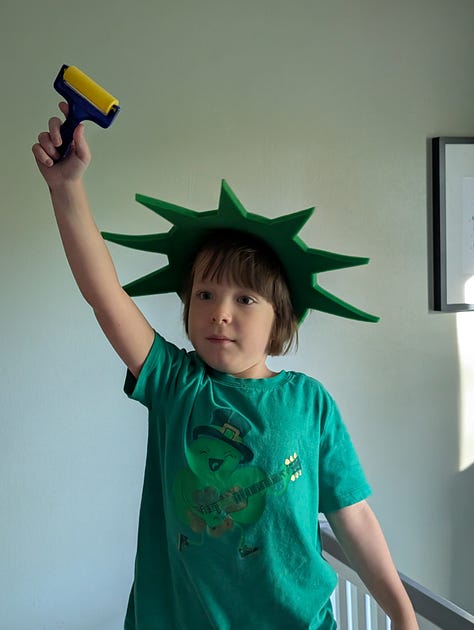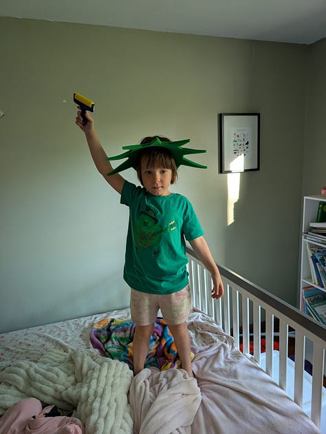 “Dad!. I’ll go stand on my bed and you come find me and I’ll be the statue of Liberty”