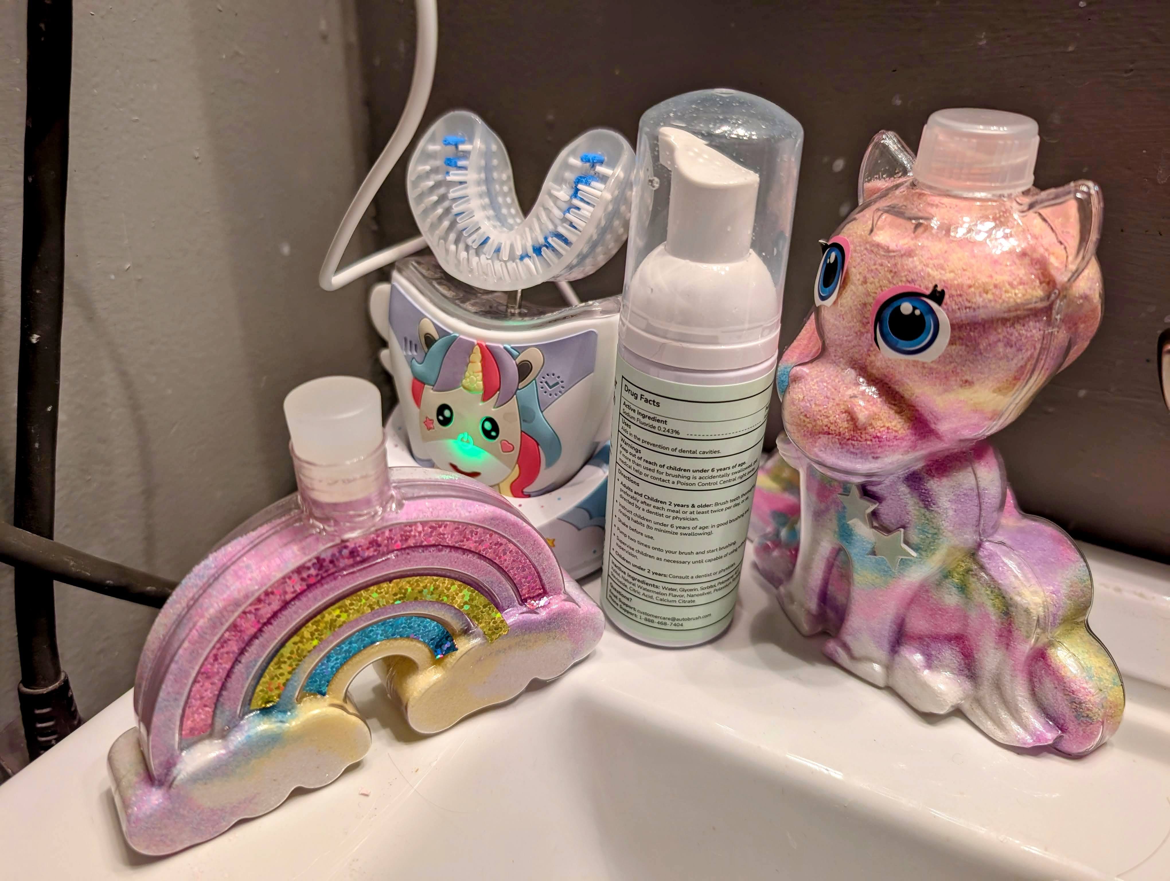 A fancy toothbrush, and so far it’s a big hit here. It’s so big she made a shrine for it: