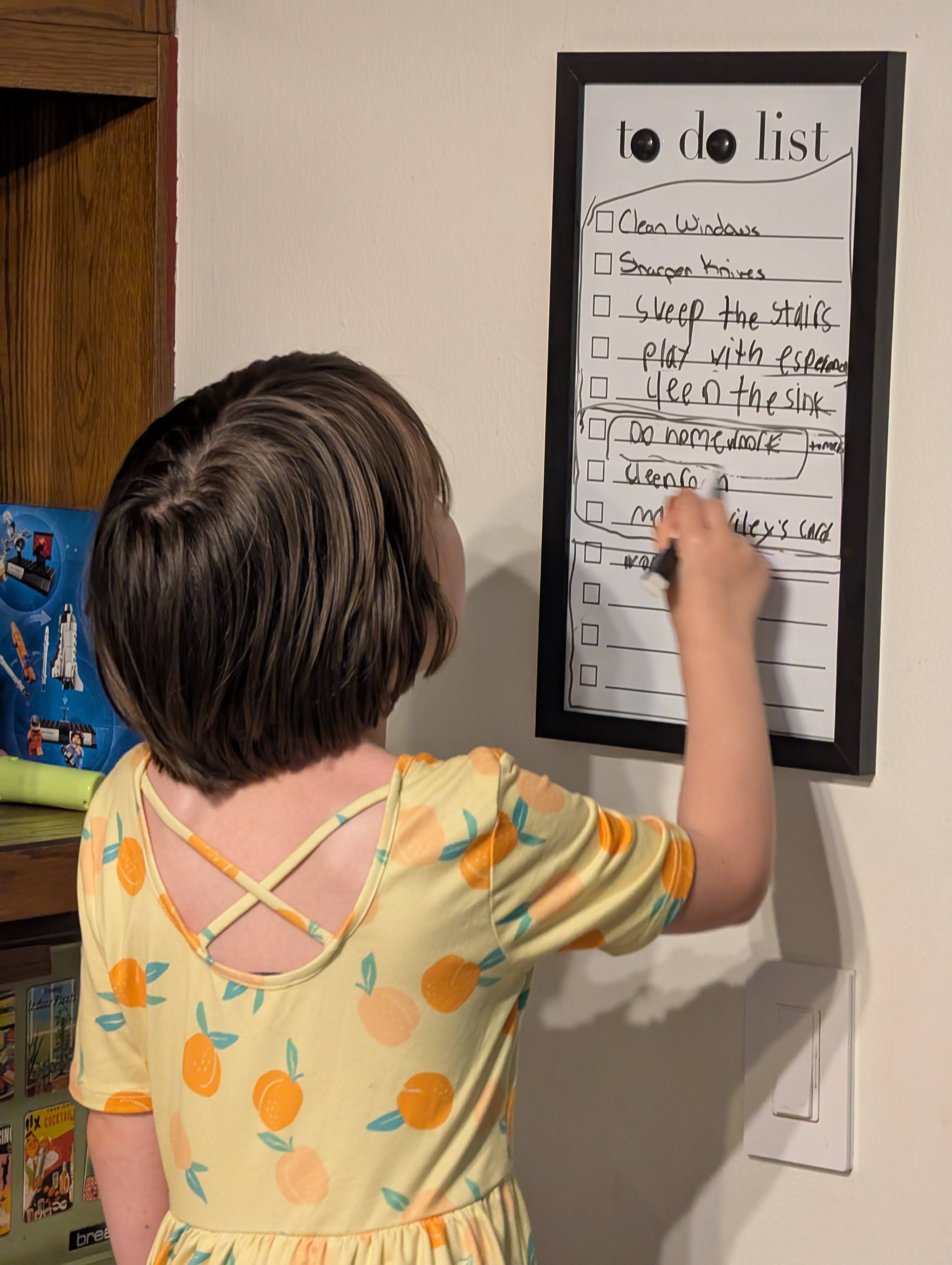 And on a whim BW picked up a dry-erase to-do list. I think originally it was bought with the intention of going in her office. It didn’t make it.