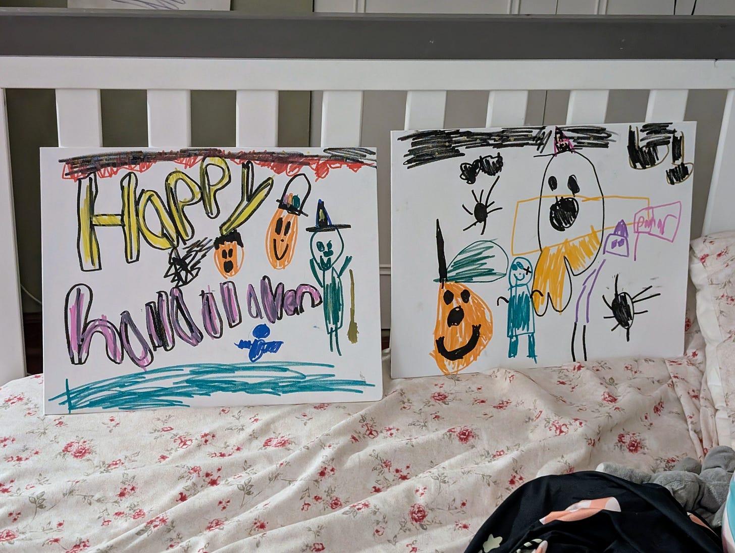 First, there was dancing. She found a little projector that projects pumpkins and witches on the ceiling when you turn out the lights, so just like the Bruce Springsteen Song we were Dancing in the Dark.