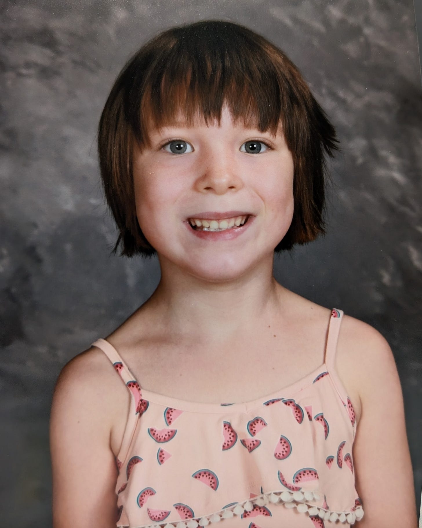 My first thought was how grown up she looked. It seemed not too long ago that she came home to us and now she’s got a big goofy grin captured for all time in her first grade photo