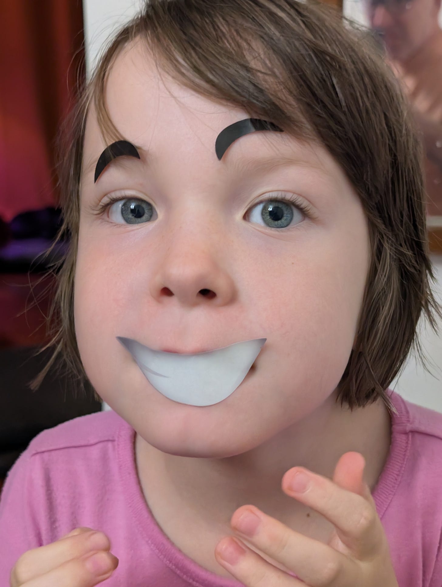 We were not there. She came down the stairs with stickers on her face: