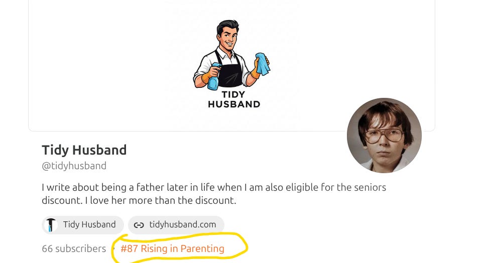 To all you empty nesters and single folks chuckling at my misfortune: You can laugh, but I’m the number 87 on the rising newsletter list in the parenting section here on Substack