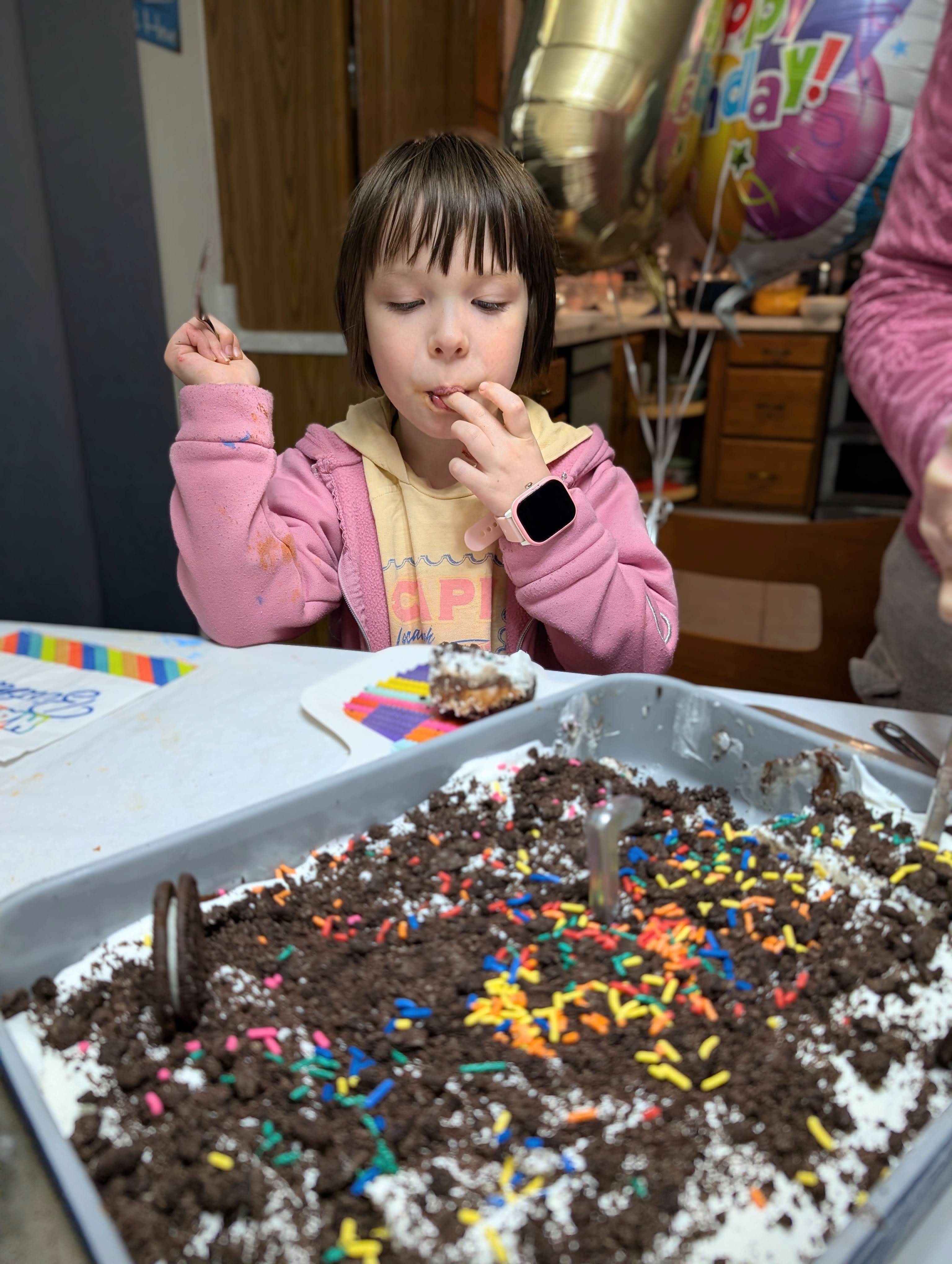 And she had a great day for her birthday. She didn’t have to go to school and instead we went sledding. We should have read the tea leaves when we arrived at the hill and there was nobody around, but we were dressed really warm and we did okay for the 20 minutes we were there - the first ride down was a success and then the second resulted in a face plant in the cold snow - and it was really cold - so we packed it in.