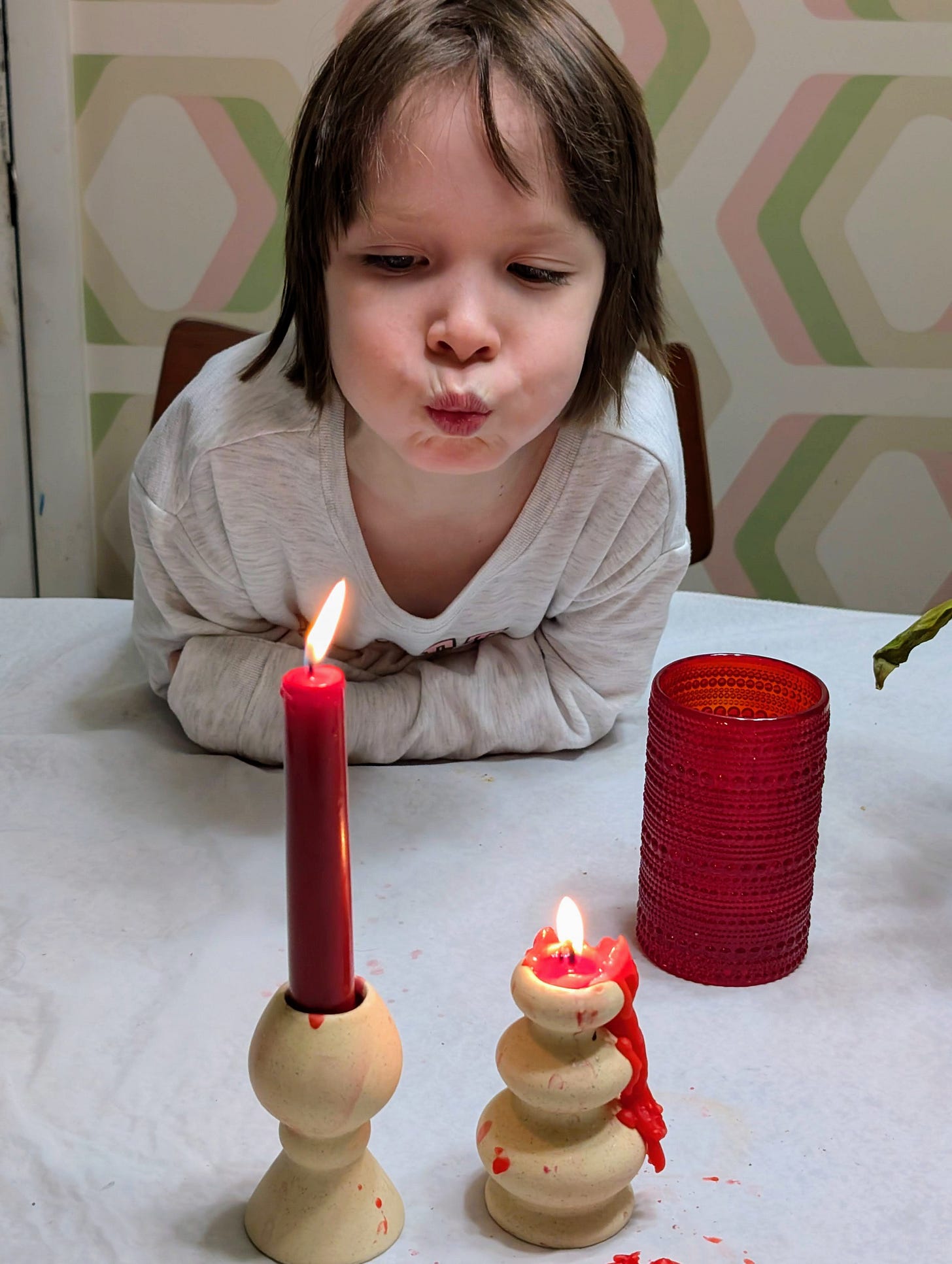 With five minutes to go until 8pm, we rushed to go to the front door and make some noise by banging some pots and pans with a wood spoon, which she loved and then she blew out the candles and that was it.