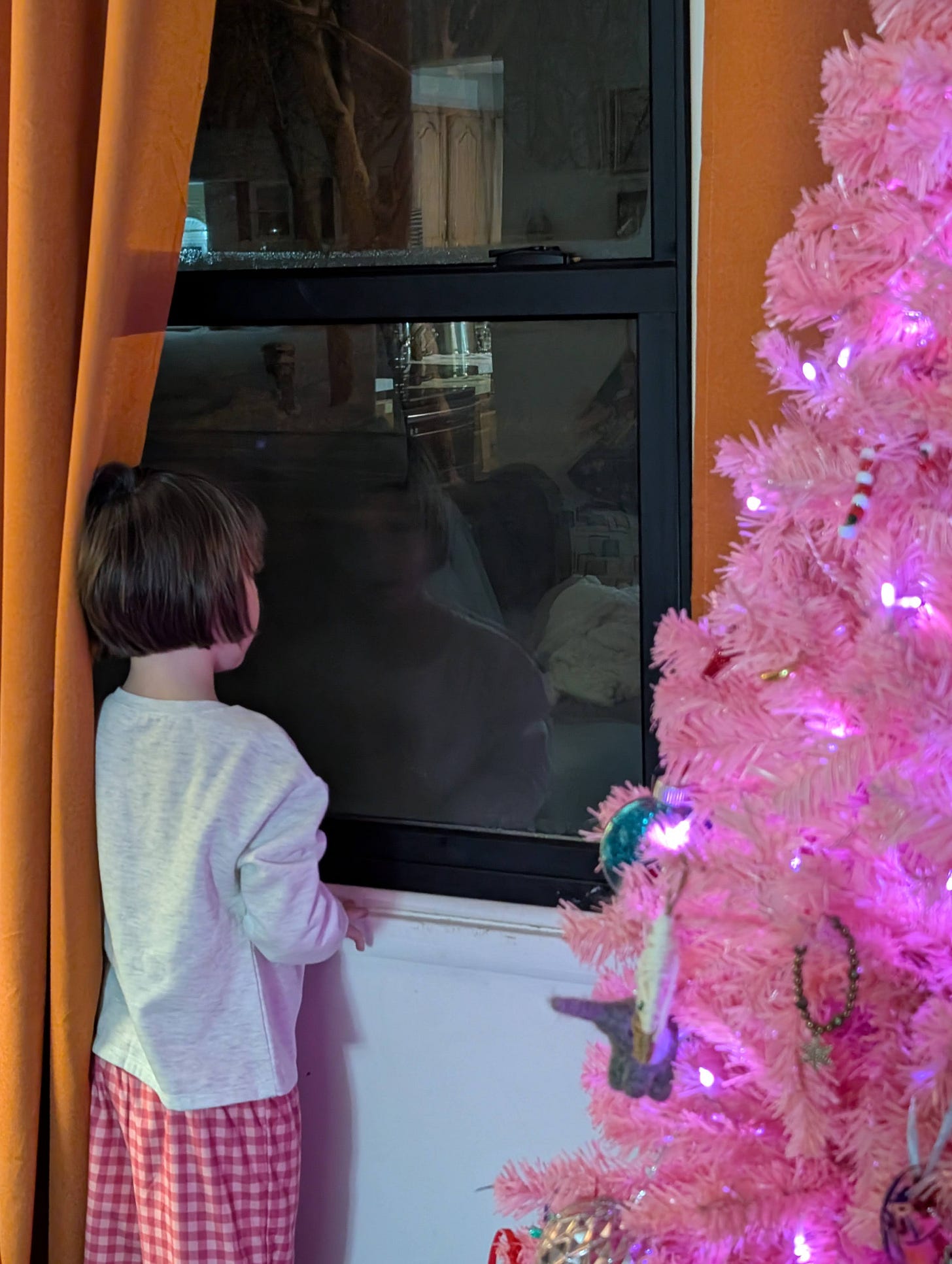 Then our windows started to light up and we thought it was the police or ambulance until we realized it was just the truck that plows our driveway. But, if you’re the child or the dog, then this was a big deal.