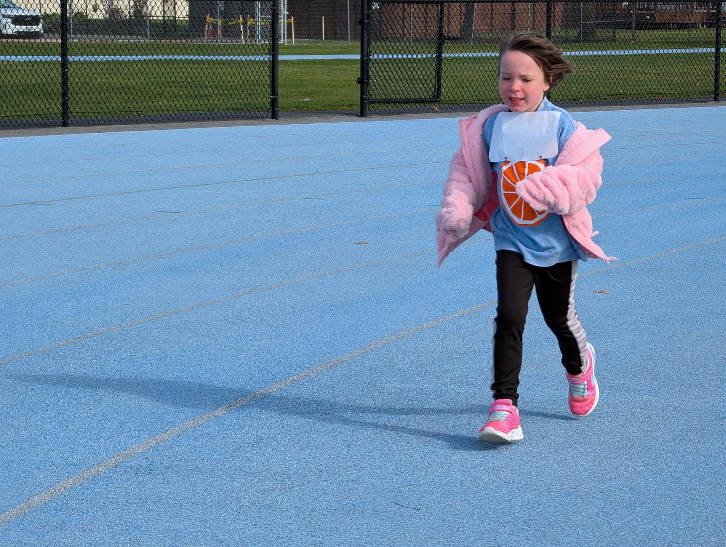 The fact that she actually ran the whole quarter mile and helped collect donations says everything about the values you're instilling. Coming in 2nd to last just means she paced herself and didn't burn out early, which is actualy pretty smart for a kid. That K-Pop book is going to be a hilarious time capsule someday when she rediscovers it on your bookshelf. The pride in your voice comes through so clearly, and these little moments of her showing up for others are the ones that realy matter.